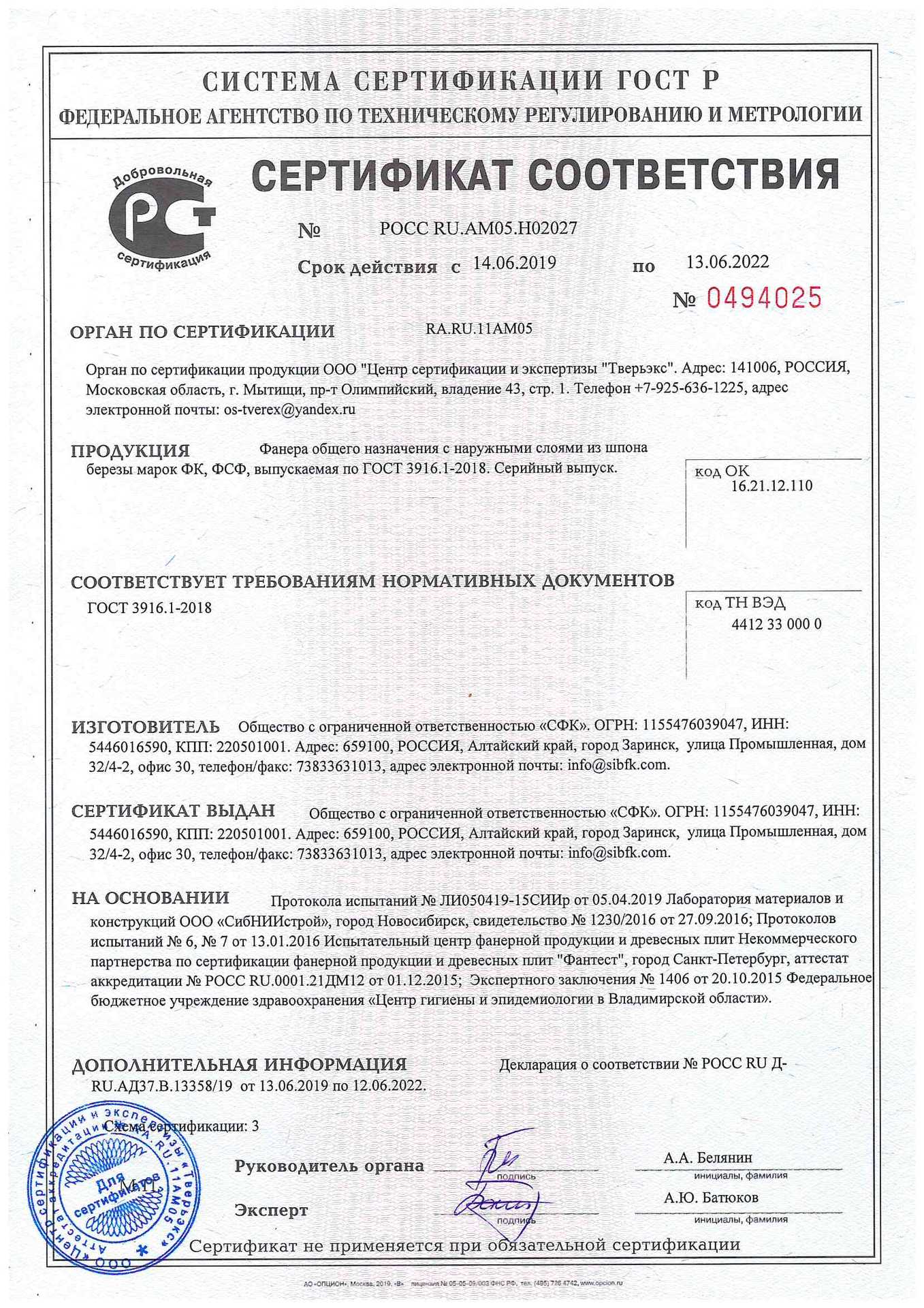 Тип Фанера ФК