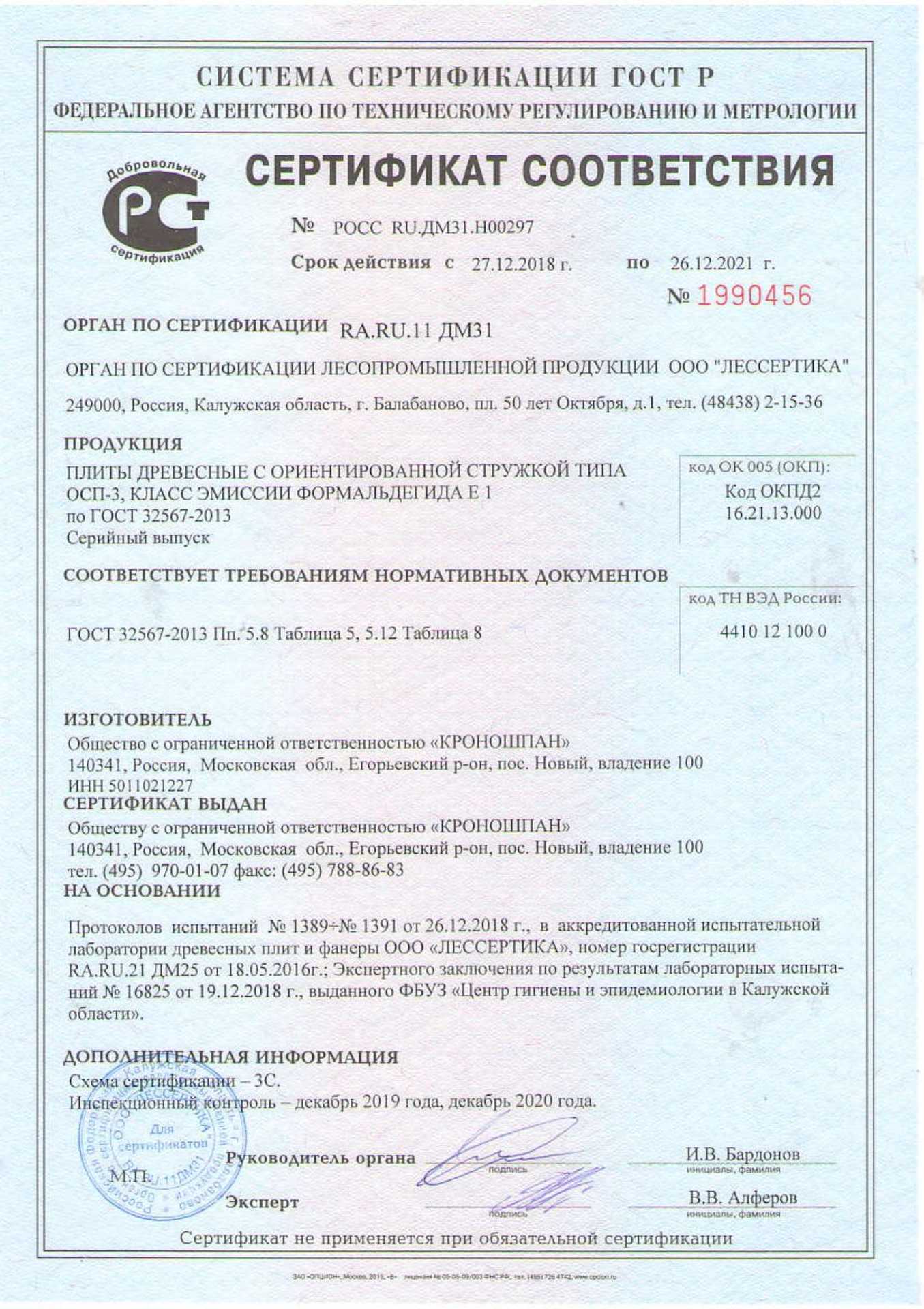 Плита OSB-3 (ОСП) Кроношпан шпунтованная 15х625х2500 мм